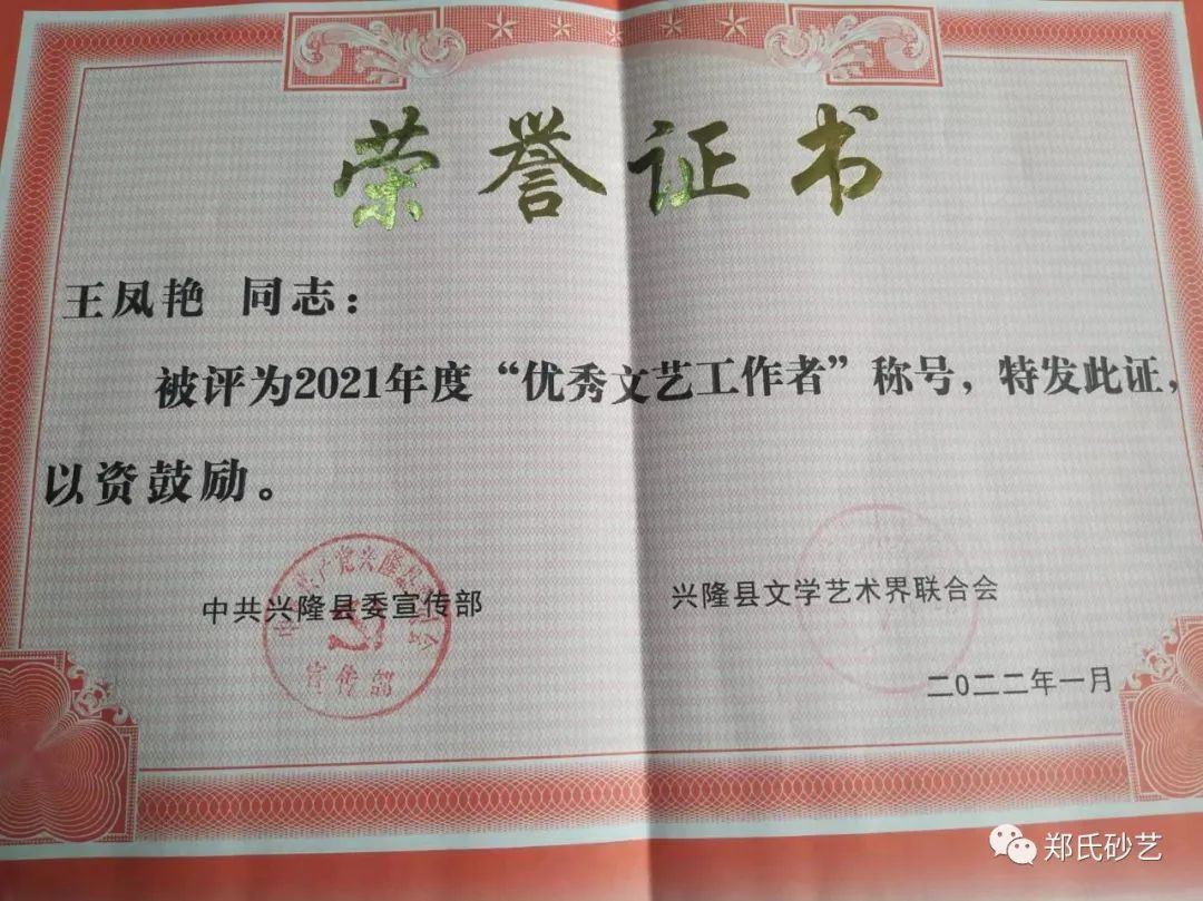 近日,縣委宣傳部、縣文聯(lián)發(fā)表了《關(guān)于表彰2021年度優(yōu)秀文藝家協(xié)會(huì)、優(yōu)秀村級(jí)文聯(lián)、優(yōu)秀企業(yè)文聯(lián)、優(yōu)秀文藝工作者的決定》,文中指出“2021年,在縣委、縣政政府的堅(jiān)強(qiáng)領(lǐng)導(dǎo)下,在市文聯(lián)的直接指導(dǎo)下,全縣廣大文藝工作者,深入學(xué)習(xí)貫徹黨的十九大和習(xí)近平文藝座談會(huì)上的講話(huà)精神,在‘鄉(xiāng)村振興黨旗紅·文藝創(chuàng)新樹(shù)先鋒’和‘文藝名村’建設(shè)實(shí)踐活動(dòng)中,辛勤耕耘,積極創(chuàng)作,服務(wù)人民,為繁榮全縣文藝事業(yè)做出了積極貢獻(xiàn),涌現(xiàn)出了一大批表現(xiàn)突出、成績(jī)優(yōu)異的文藝工作者。”在此次通報(bào)表彰中,鄭氏砂藝董事長(zhǎng)鄭鐵軍、徐書(shū)英、王鳳艷、趙文紅、張國(guó)新、王建寶、張玉紅、張秀榮、王婷共9人被縣委宣傳部和縣文聯(lián)授予2021年度“優(yōu)秀文藝工作者”稱(chēng)號(hào)。企業(yè)將繼續(xù)開(kāi)拓創(chuàng)新,潛心創(chuàng)作,努力發(fā)掘出更多文藝人才,壯大鄭氏砂藝藝術(shù)研究所,創(chuàng)作出更多文藝精品,為推進(jìn)新時(shí)代興隆縣文藝事業(yè)繁榮發(fā)展作出新的更大貢獻(xiàn)。